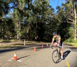B Grade included our A grade women’s competitor Emma (we are affectionatly adopting her as PMCC) and our B grade woman Alani and Junior Tour Naming rights sponsor Michael Percival ( who celebrated his birthday this week with a 400 km ride) Cam conveniently enter Paul D into B grade and that’s were he stayed for the afternoon. The group splintered and left Paul H in their wake Alistair was next to fall a bit behind – but always polite and thankful to traffic control as he rides past. As they started their last lap 5 riders were still together.